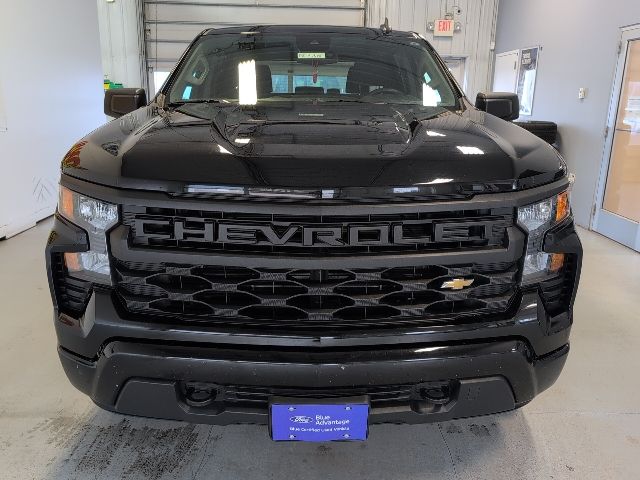 Certified. Black 2023 Chevrolet Silverado 1500 Custom 4WD 8-Speed Automatic 2.7L Turbo 8-Speed Automatic, 4WD, Jet Black w/Cloth Seat Trim.